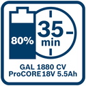 Der ProCORE18V 5.5Ah ist mit einer hochauflösenden Ladezustandsanzeige mit 5 LEDs ausgestattet.