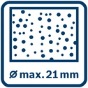 Sein starker 720-Watt-Motor und eine Schlagenergie von 2,0 Joule gewährleisten effektives Hammerbohren in Beton bis zu einem Durchmesser von 21 mm.